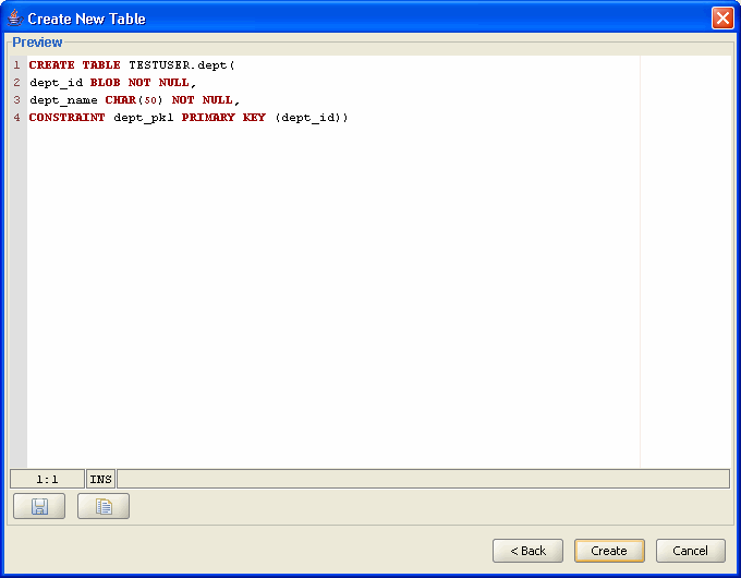 Table creator allows you to create new tables without knowing the exact SQL syntax. You can copy and save the SQL statements from the preview screen before the table is created.