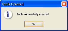 Click on 'Create' to issue the shown SQL statement. If the table was created successfully the Table Create Successful screen displays as shown below.